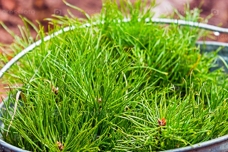 Саженцы сосны в жестяном ведре, подготовленные к посадке