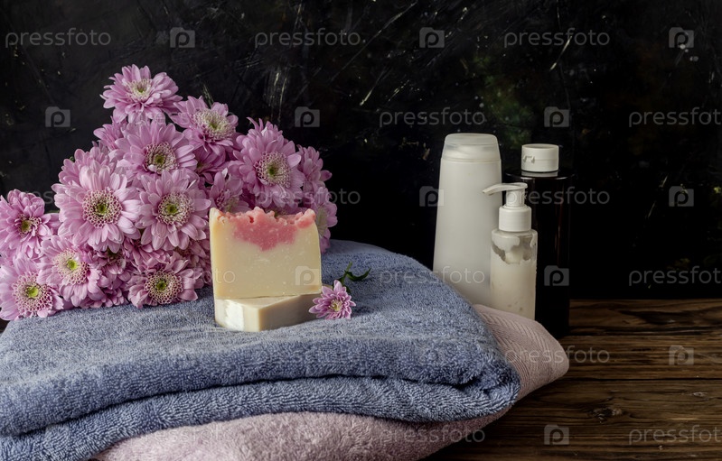 Предметы личной гигиены для спа, полотенца на столе крупным планом