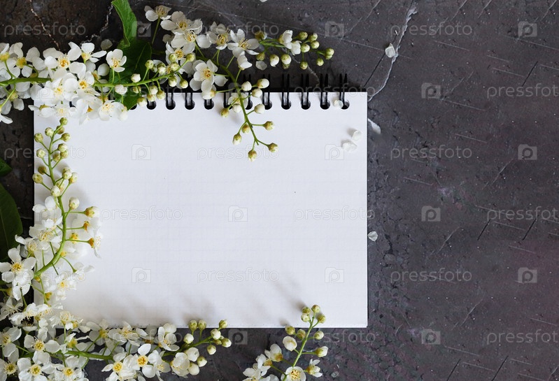 Цветочный макет на винтажном белом деревянном фоне и частично на компьютере. Весенние цветы, концепция женщины-фрилансера. Вид сверху