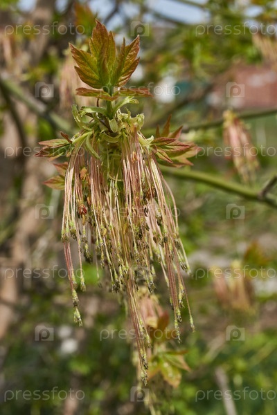 Цветение ясеньколистный кленовый, или американский клён (лат. Acer negundo), соцветия распускаются Весной