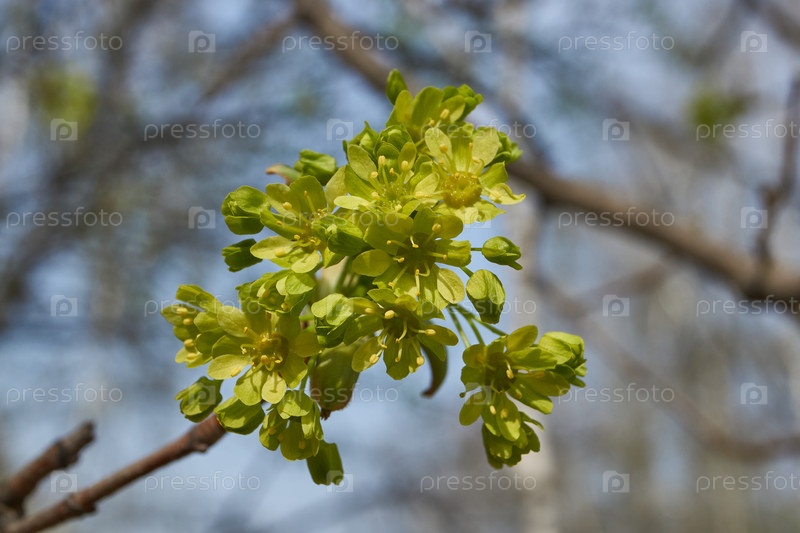 Растворяются цветочные почки остролистного клёна (лат. Acer platanoides). Деревянный вид растения рода Асер семейства Сапиндовых