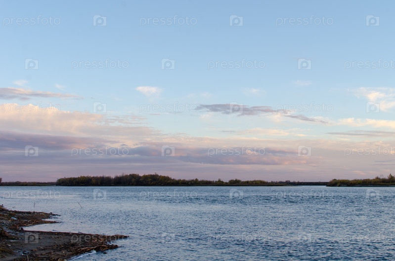 Вид на осенний берег реки Иртыш в Омской области
