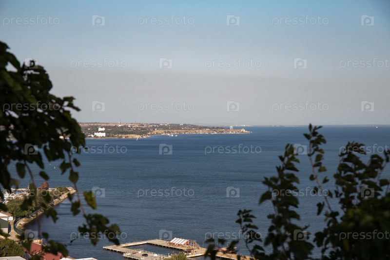 Вид на Керченский пролив с горы Митридат в Керчи летом