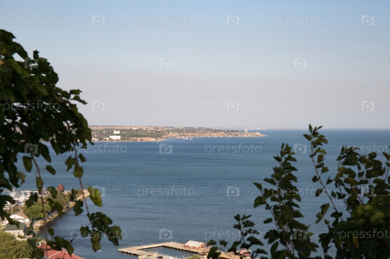Вид на Керченский пролив с горы Митридат в Керчи летом