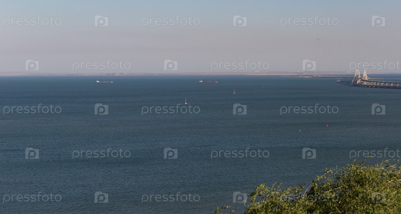 Вид на Крымский мост с горы Митридат в Керчи летом