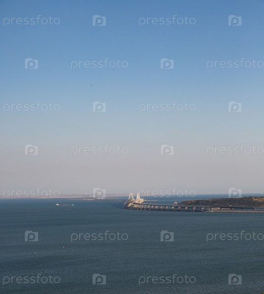 Вид на Крымский мост с горы Митридат в Керчи летом