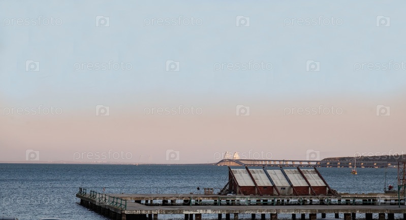 Вид на морской порт города Керчи летом
