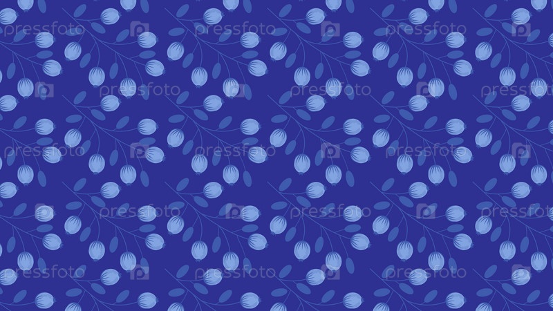 Прямоугольный фон с повторяющимся узором из ягод и листьев на синем фоне