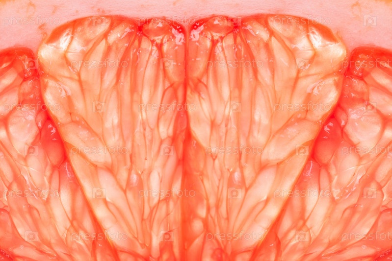 Текстура красного грейпфрута в разрезе, макрофотография фруктов
