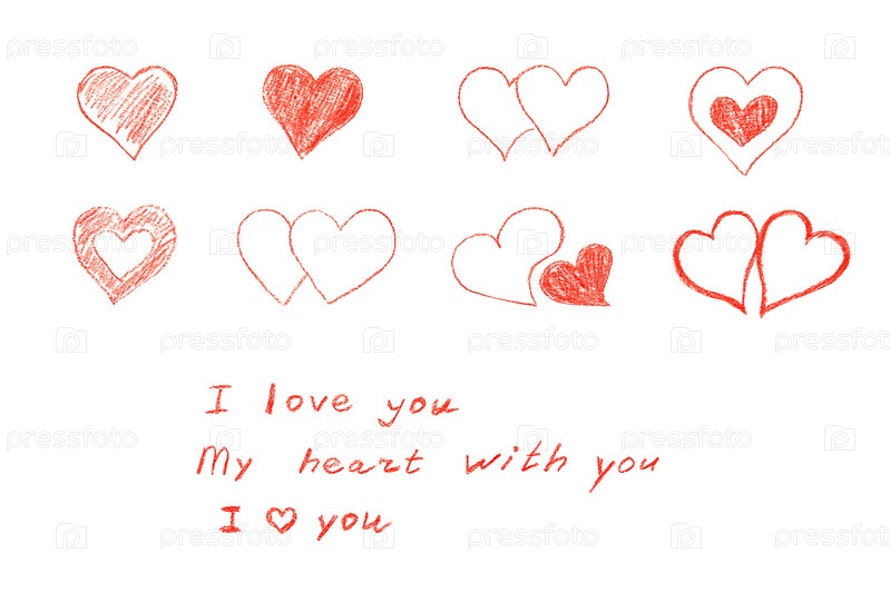 Несколько вариантов изображения сердечек и подписей для открыток. День святого Валентина