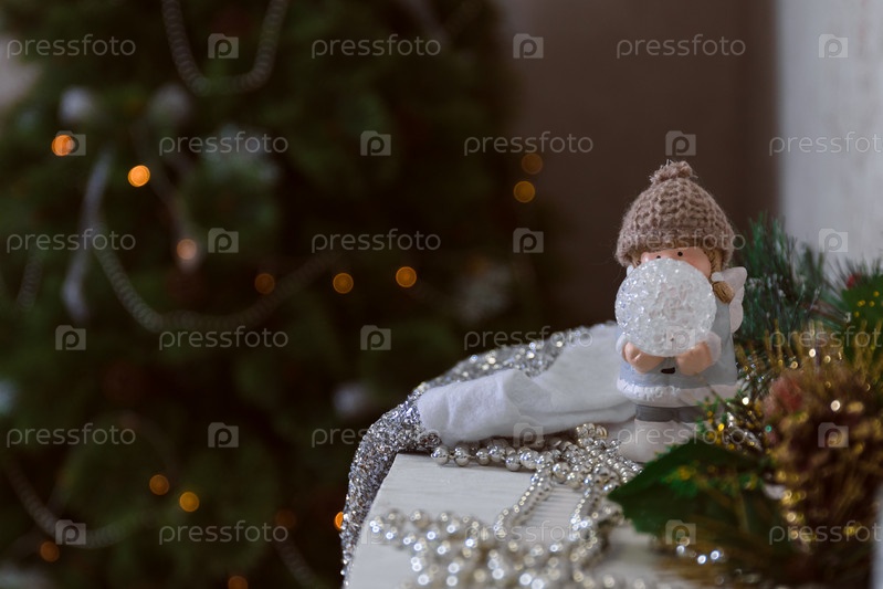 Дизайн интерьера к Новому году (Рождеству) с елкой на заднем плане