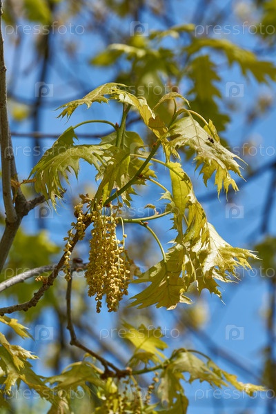 Дуб красный (лат. Quercus Rubra) цветет, распускаются соцветия.Дуб красный (лат. Quercus Rubra) дерево, разновидность рода дуб семейства буковых (Fagaceae).Весна