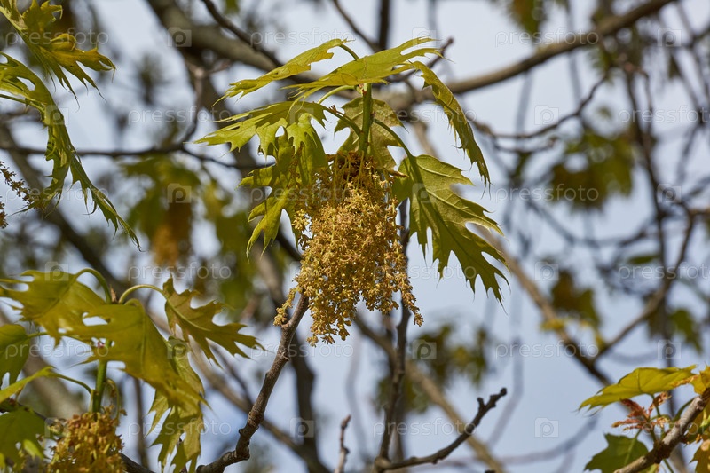 Дуб красный (лат. Quercus Rubra) цветет, распускаются соцветия.Дуб красный (лат. Quercus Rubra) дерево, разновидность рода дуб семейства буковых (Fagaceae).Весна