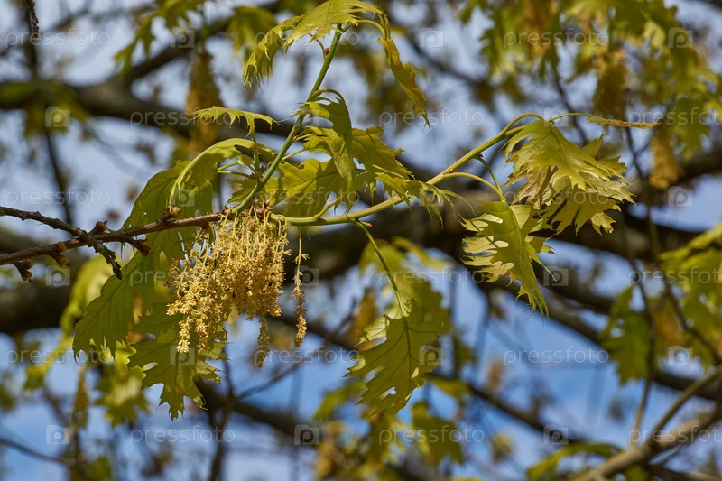 Дуб красный (лат. Quercus Rubra) цветет, распускаются соцветия.Дуб красный (лат. Quercus Rubra) дерево, разновидность рода дуб семейства буковых (Fagaceae).Весна