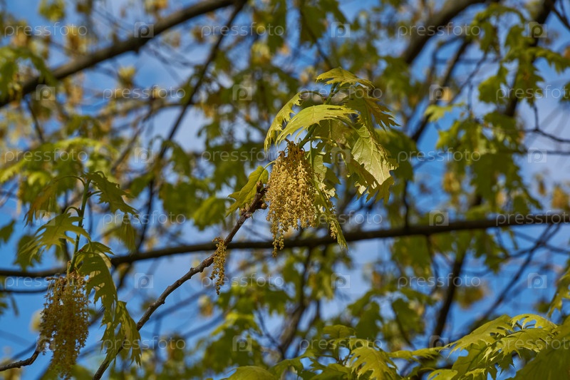 Дуб красный (лат. Quercus Rubra) цветет, распускаются соцветия.Дуб красный (лат. Quercus Rubra) дерево, разновидность рода дуб семейства буковых (Fagaceae).Весна