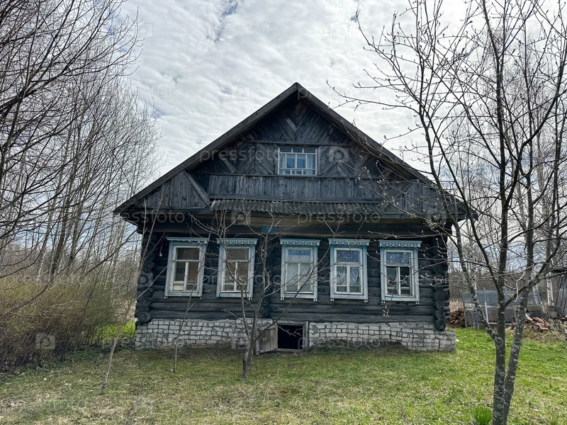 Старый коричневый деревянный дом летом