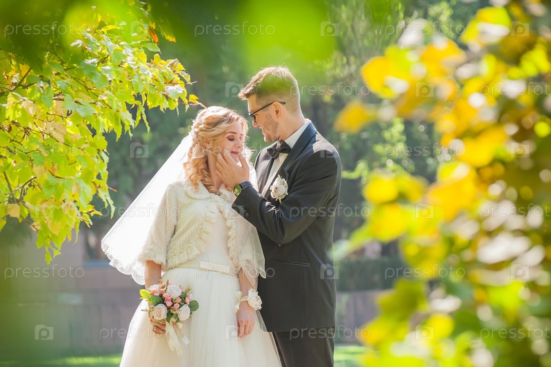 Жених и невеста нежно гладят лица друг друга