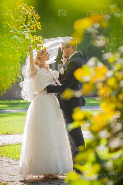 молодожены, обнимающие