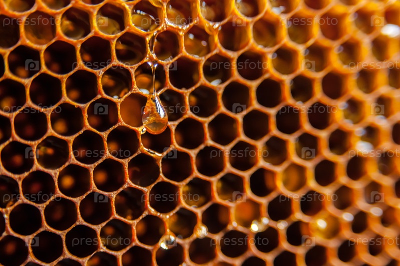 Соты в качестве фона, рамка с медом
