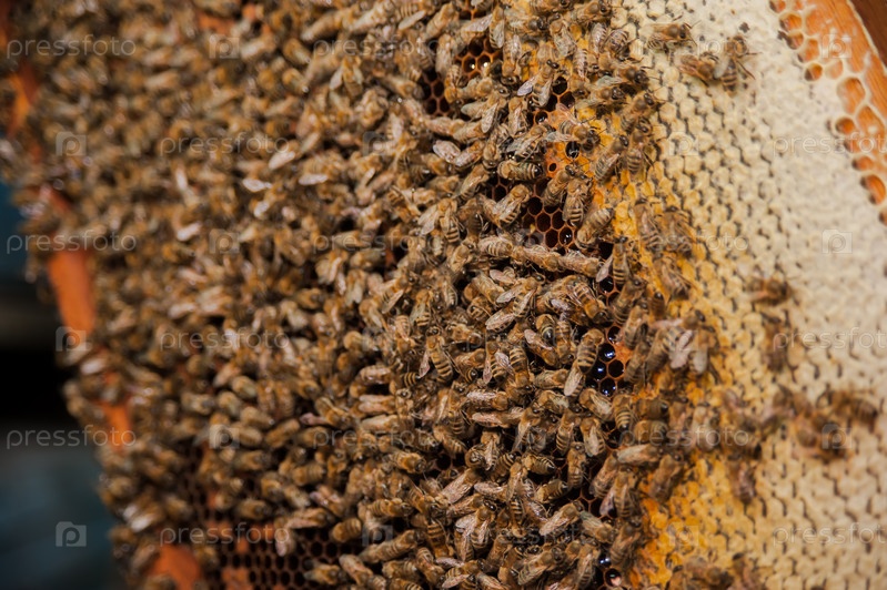 Сотовая рамка с пчелами, медом и расплодом