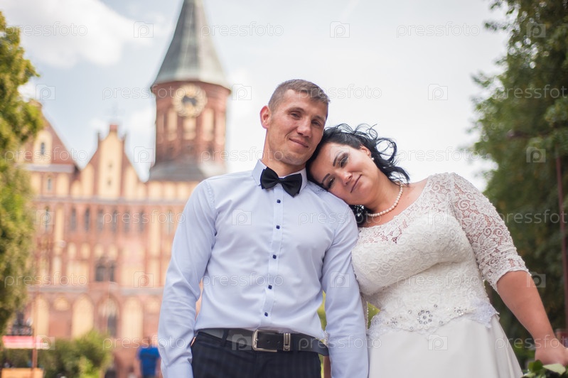 Молодожены на фоне старинных построек
