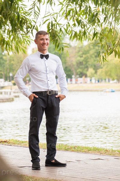 Мужчина, жених в классическом костюме и с бутоньеркой