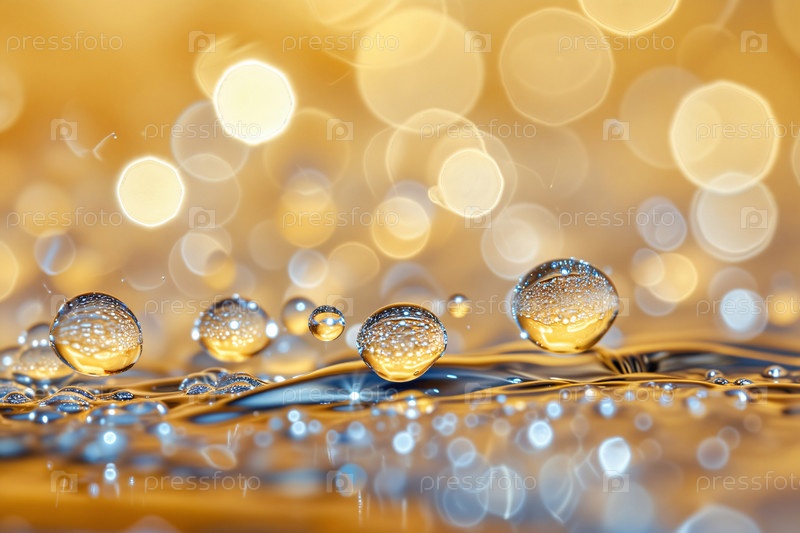 Макро капли воды на желтой поверхности
