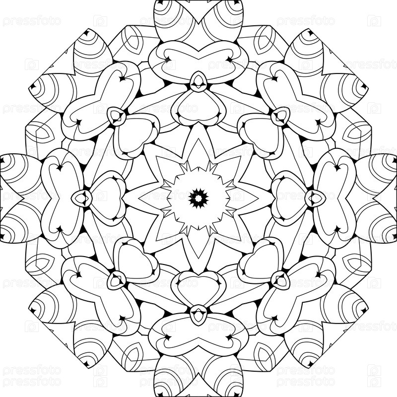 Декоративные круглые украшения. Необычная форма цветка. Восточный вектор, модели антистрессовой терапии. Сплетите элементы дизайна для раскрашивания