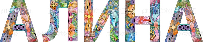 Женское имя на русском языке Алина. векторный декоративный объект zentangle