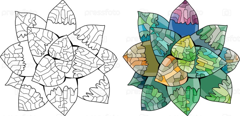 Сочное комнатное растение. Распечатать форму домашнего растения, городской декор в тропических джунглях. Набор цветов и контуров