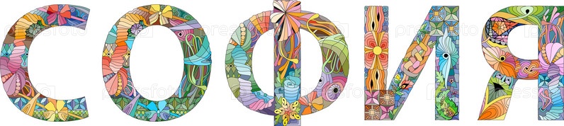 Женское имя на русском языке София. векторный декоративный объект zentangle