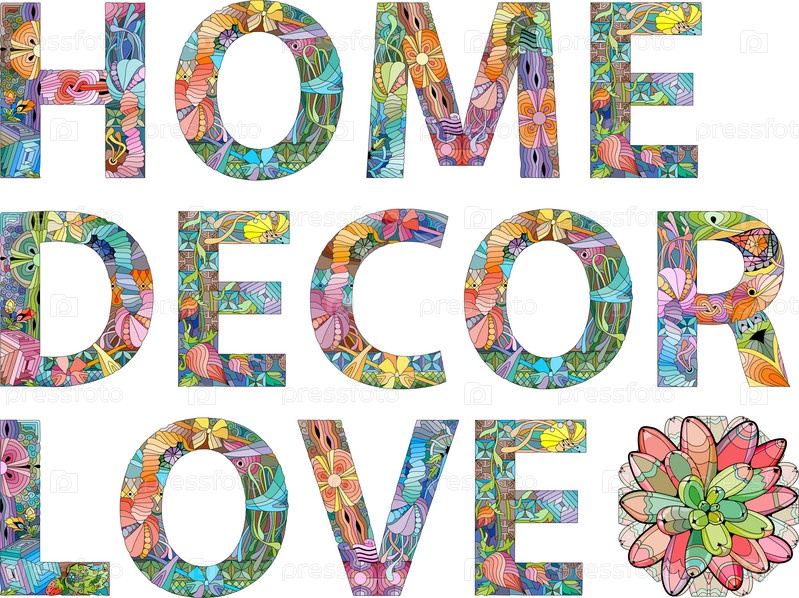 Ручная роспись художественного дизайна.Ручно нарисованные иллюстрации слов HOME DECOR LOVE для футболок и других украшений