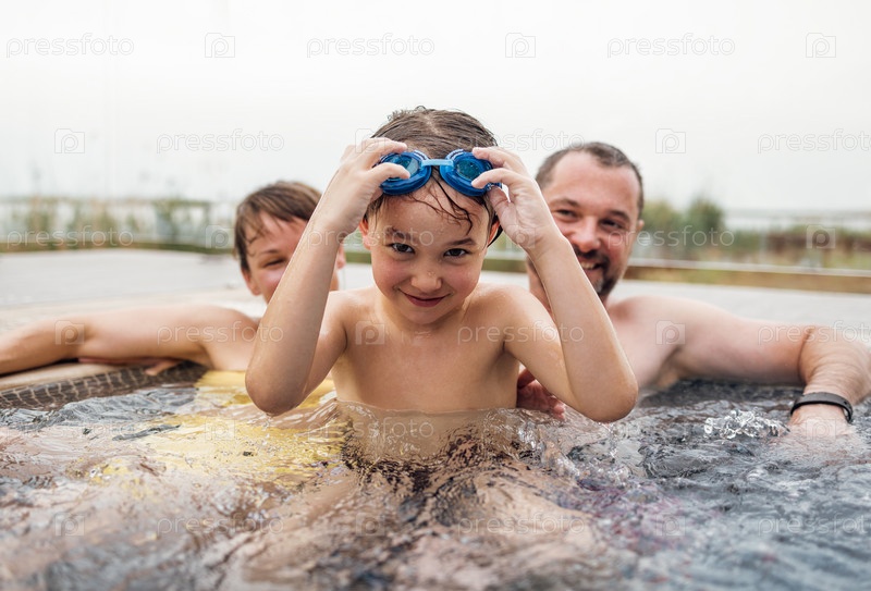 Милый мальчик и его родители купаются в какашках под открытым небом