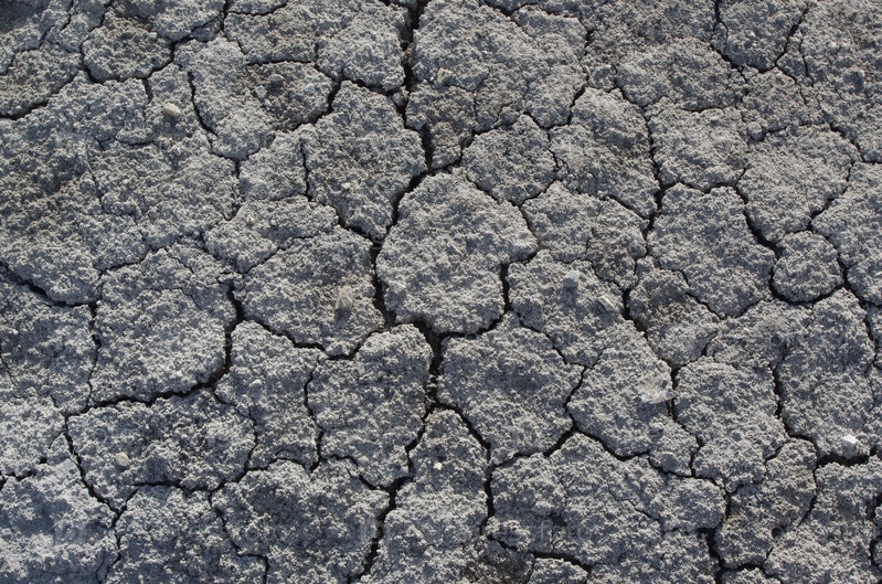 Естественная текстура потрескавшихся сухих земель. Сломанная серая глиняная поверхность бесплодной засушливой пустоши вблизи