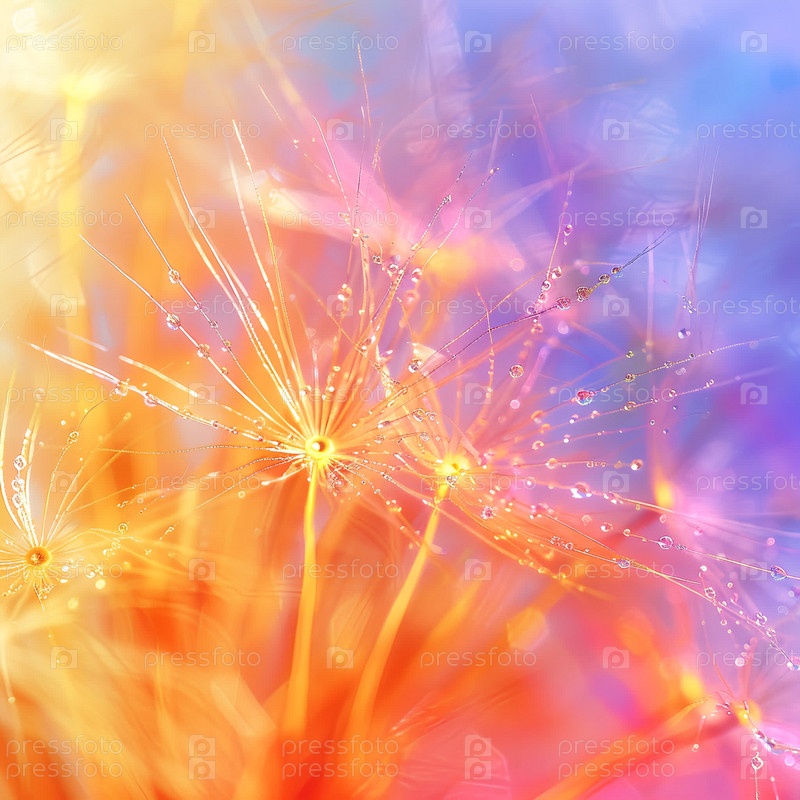 Художественная фотография одуванчика крупным планом на синем фоне