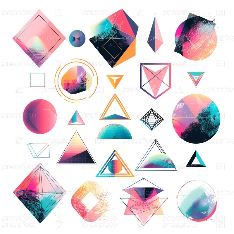 Большая коллекция модных голографических, геометрических, красочных абстрактных форм и декоративных линий