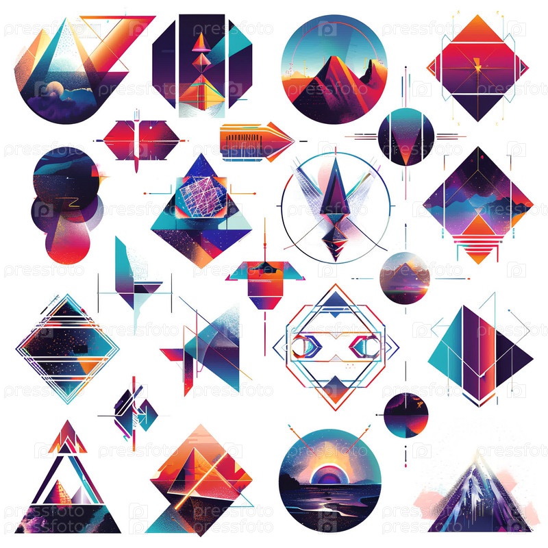 Большая коллекция модных голографических, геометрических, красочных абстрактных форм и декоративных линий