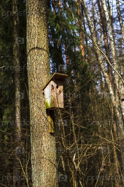 Концептуальный снимок деревянного скворечника. На открытом воздухе