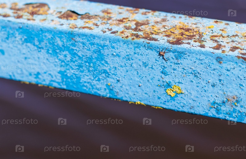 Крупный план паука на ржавом металлическом стержне. Природа