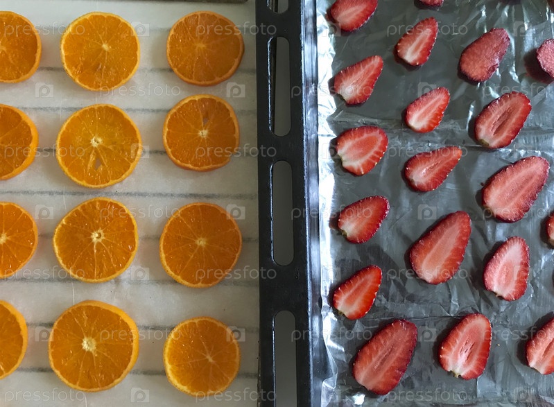 Мандарины и клубнику нарезают ломтиками. выкладываем на пищевую бумагу. Для сушки и украшения десертов