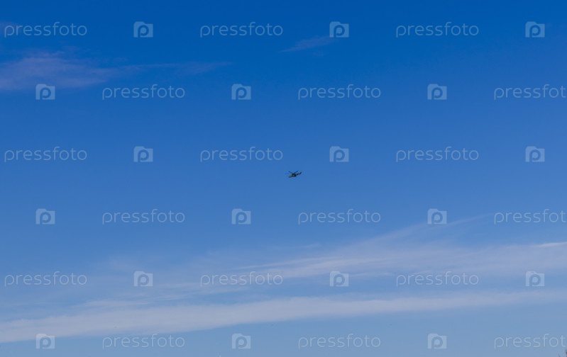 Выстрел военного вертолета в небе. Концепция