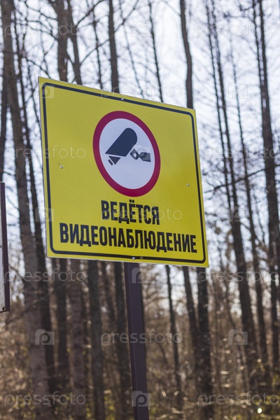 Предупреждающий знак, что государство на русском языке, под наблюдением. Концепция