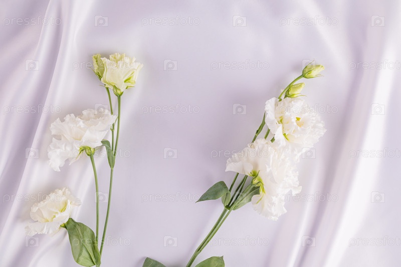 Абстрактный белый фон шелковых волн белой ткани. Нежный фон. Концепция свадьбы или свадебного декора. белые свежие цветы