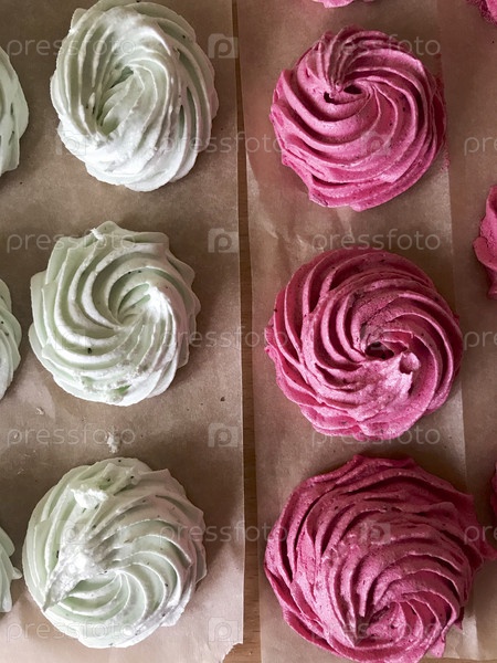 Домашний зефир Разного цвета. Лежит на пищевой бумаге, чтобы высохнуть