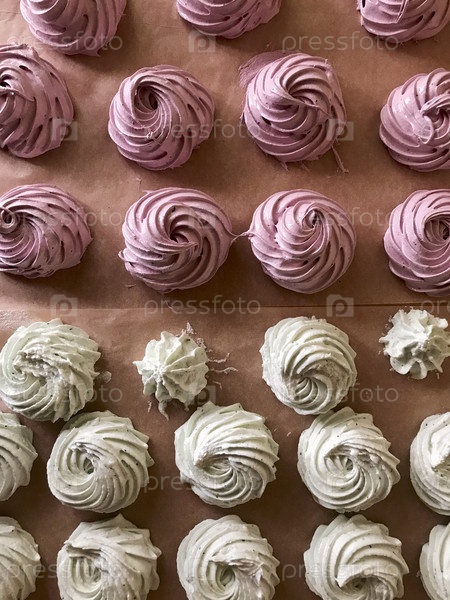 Домашний зефир Разного цвета. Лежит на пищевой бумаге, чтобы высохнуть