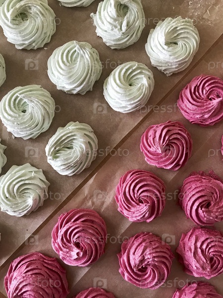 Домашний зефир Разного цвета. Лежит на пищевой бумаге, чтобы высохнуть