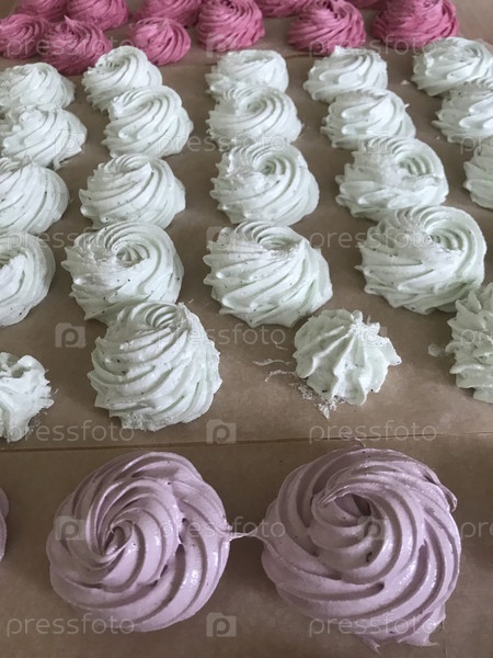 Домашний зефир Разного цвета. Лежит на пищевой бумаге, чтобы высохнуть