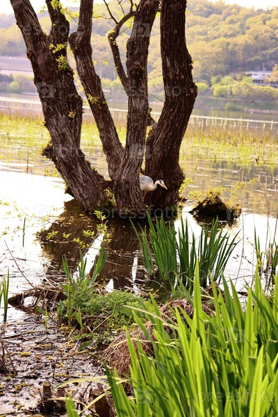 аист в озере