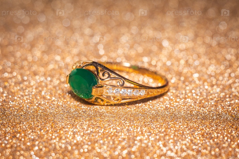 Золотое кольцо с зеленым агатом