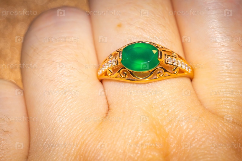 Золотое кольцо с зеленым агатом